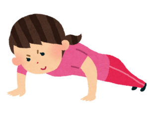 筋肉を鍛えるためにも腕立て伏せ、腹筋、スクワットを毎日10回行うようにしましょう。